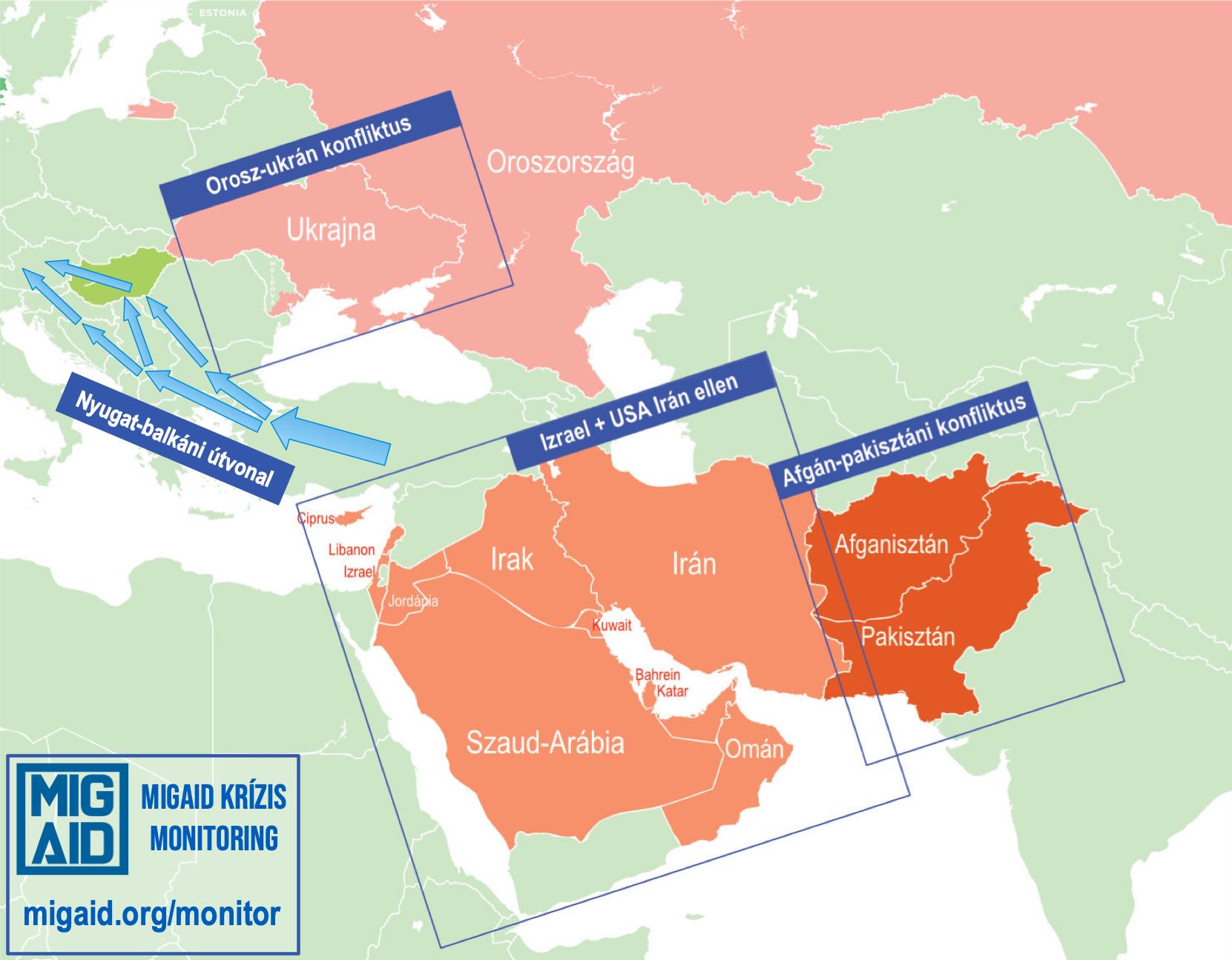 Mint az előzőekben láthattuk, a magyar határokon akkor jelentkezne ún. „migrációs nyomás”, ha a nyugat-balkáni útvonalon megfigyelhető a menekülő emberek számának a növekedése. Jelenleg két jelentősebb katonai konfliktus zajlik abban a térségben, ami a nyugat-balkáni útvonal „forrásvidéke”. Egyrészt az Irán elleni amerikai-izraeli katonai műveletek, másrészt a néhány hete egyre súlyosabb méreteket öltő háború Pakisztán és a tálibok vezette Afganisztán között, ami a híradásokban szinte teljesen a háttérbe szorul.